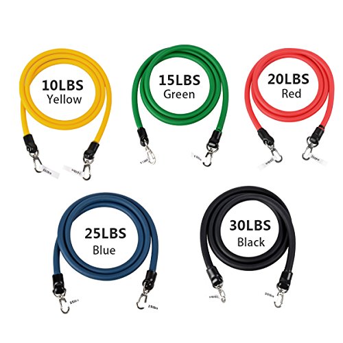 강도별 휘트니스 튜브는 5계단 있고, 1개씩 사용도 편성해 사용도 가능.10파운드부터 100파운드까지 트레이닝으로 옵니다.★옐로우(10lbs 약5kg)고,★녹색(15lbs 약7kg)고,★빨강(20lbs 약9kg)고,★청(25lbs 약11kg)고,★블랙(30lbs 약14kg).