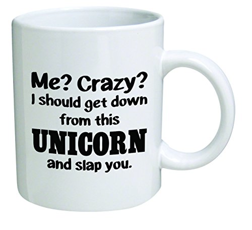 -. Brand : della Pace -. Color : White -. EAN : 0750688263050 -. Feature : della Pace is a Registered Trademark of Yates and Franco. This mug features printing on both sides and it is home and restaurant use, dishwasher and microwave safe. / 100% pure white ceramic with money back guarantee, Great gift for coffee addicts who will appreciate for years. / Have a coworker that is a little out of this world? This is the perfect gift for them to use in the office on those flying days. Pick the perfect gift for both men and women with a little sense of humor. / It's one of the best funny Valentine's Day gifts for exchange or for a birthday party or even for a tea lover. Everyone surely will all appreciate this gift. / Not sure is will be safe for your boss yet, it will be probably get you fired. Still this is one of the best novelties around. -. Label : Yates and Franco -. Manufacturer : Yates and Franco -. PackageQuantity : 1 -. ProductGroup : Kitchen -. ProductTypeName : KITCHEN -. Publisher : Yates and Franco -. Size : 11 Ounce -. Studio : Yates and Franco -. Title : Funny Mug 11OZ - Me crazy? I should get down from this unicorn and slap you. brother. Cool Birthday gift for coworkers, Men & Women, Him or Her, Sister - Boyfriend, Girlfriend, Husband or Wife -. UPC : 750688263050