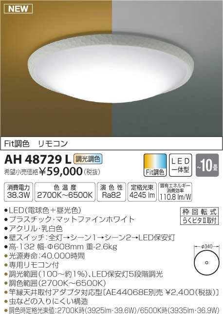 ●調色時定格光束値:2700K時(3925lm・39.6W)/6500K時(3935lm・36.9W)