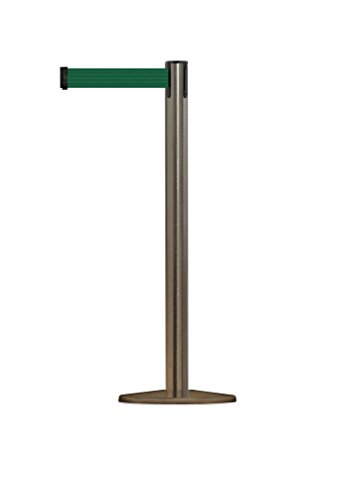 Tensabarrier 889U-3S-3S-STD-NO-G7X-C Satin Stainless Post, 2" Wide, 7' 6" Length "Dark Green" Belt, 90" Length, Steel