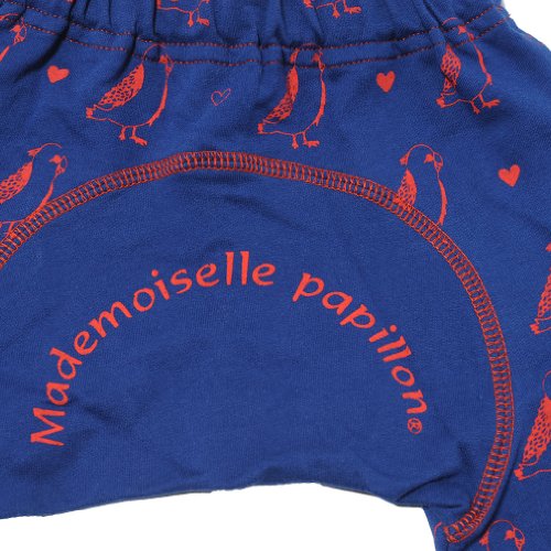 - Title : Mademoiselle Papillon ("Miss Butterfly") - "Monkey" Pants; Parakeet & Hearts,Navy,6-12 Months