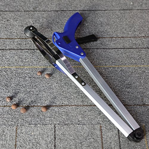 Folding size is 43cm / 16.9 inch, when you don't use it, turn off switch on the handle, the item can be saved, being held or released and easy to store anywhere; Handle and lever mechanism on this reacher is very easy to use;