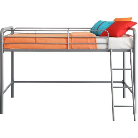 Studio : Junior5458096 Publisher : Junior5458096 Binding : Baby Product Product Description Get more out of your kid's bedroom with the Junior Metal Loft Bed. It makes an ideal choice for small- to medium-sized room as it saves space. This sleek junior loft bed with its trendy design will enhance any bedroom decor. It incorporates a side-ladder and upper guard rails for safety. The durable steel construction is complemented with an elegant silver finish that blends in with most decor themes. This junior loft bed accommodates one twin mattress (sold separately). Easy to assemble, it withstands weights up to 225 lbs. Kids can use the area underneath the bed as a reading nook or a place to put personal belongings. Save space without compromising on safety with this contemporary loft bed. Junior Metal Loft Bed, Multiple Colorsr: Clean contemporary design Junior loft bed complements any room decor Side ladder and upper guard rails for added safety Accommodates 1 twin mattress (sold separately) 36" clearance from the ground to the bottom of the loft Weight capacity is 225 lbs Contemporary loft bed is easy to assemble Available in multiple colors Dimensions: 78"(L) x 42"(W) x 49.5"(H) Can easily be assembled Space under junior metal loft bed silver can be used as reading nook or for entertainment Helps make the most of space in any room Ideal for any small to medium-sized room Made out of strong steel Children can easily climb into contemporary loft bed using side ladder Saves space without compromising on safety 0