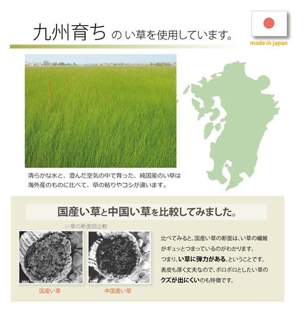 | 素材・材質 | 側地:い草(九州産)※メセキ織 中材:低反発ウレタンチップ100% ヘリ:綿100%(デニム) |