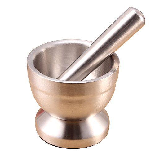 -. Feature : The function is grinding,pounding,crushing,easy to clean. / There are lots of kitchen and household uses, including turning prescription tablets into a powder, crushing fresh herbs, grinding spices, etc. / Double stainless steel construction,heavy and durable / Functional Design with Non-Skid Base, Heavy-Duty Pestle Press / Food-safe, no BPA, no lead, no mercury, elegant, durable, easy-to-clean, no residual taste, low-maintenance