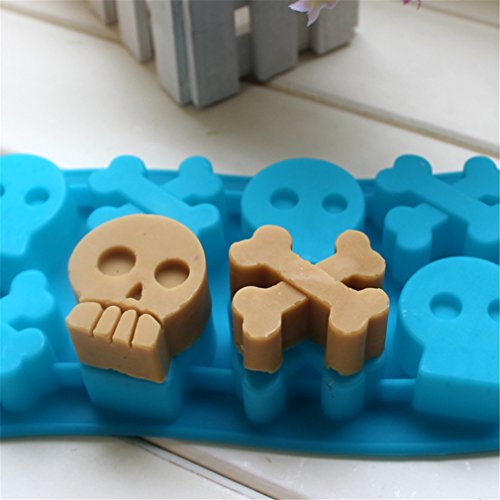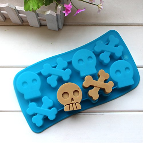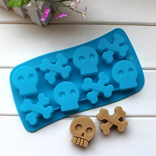 8 cell skulls bone chocolate mold,set of 3 Halloween Skull & Bone Crossbones Ice Cube Chocolate Soap Tray Mold Silicone Party maker