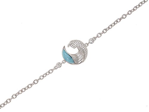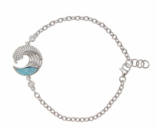 -. Feature : Wave size: 17mm (11/16") wide and 17mm (approx. 11/16") long / Stone: Larimar & clear Cubic Zirconia (CZ) / Bracelet length: 7 inch plus 1/4 inch extension / Weight: approx. 5.9 grams; stamp: 925 / Free Jewelry Gift Box Included. Ships from Hawaii with Love and Aloha Spirit