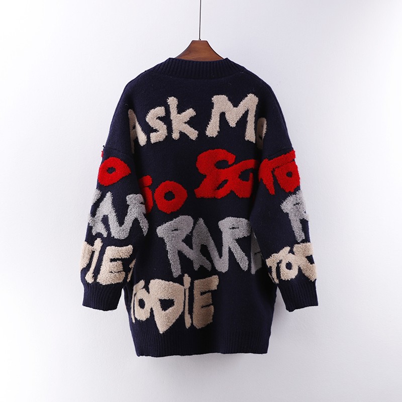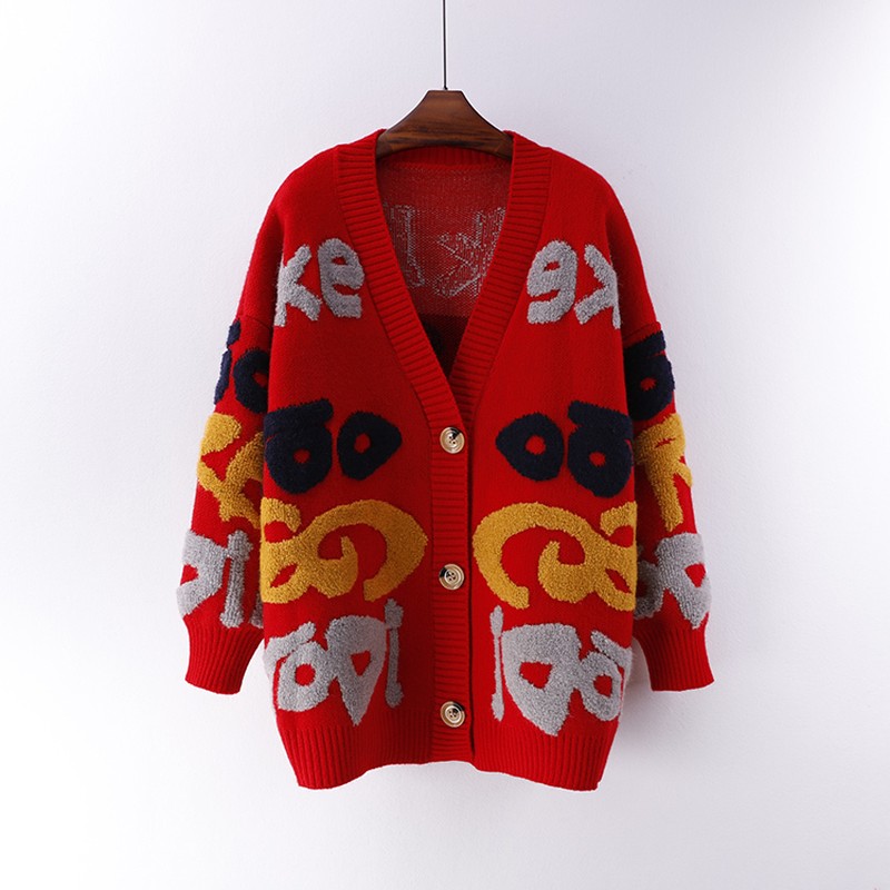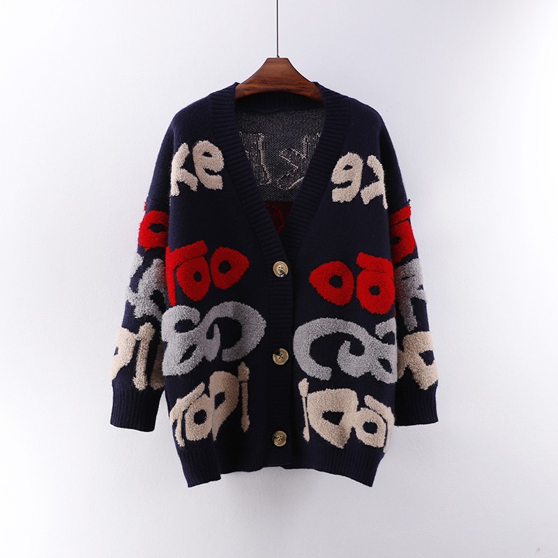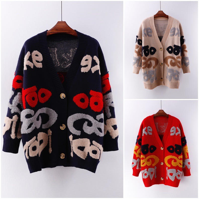 ♢ポイント♢ ビッグロゴが散りばめられたオシャレ感の強いニットカーディガン。 シンプルになりがちな秋冬コーデにプラスするだけで、上級者コーデに早変わり♪
