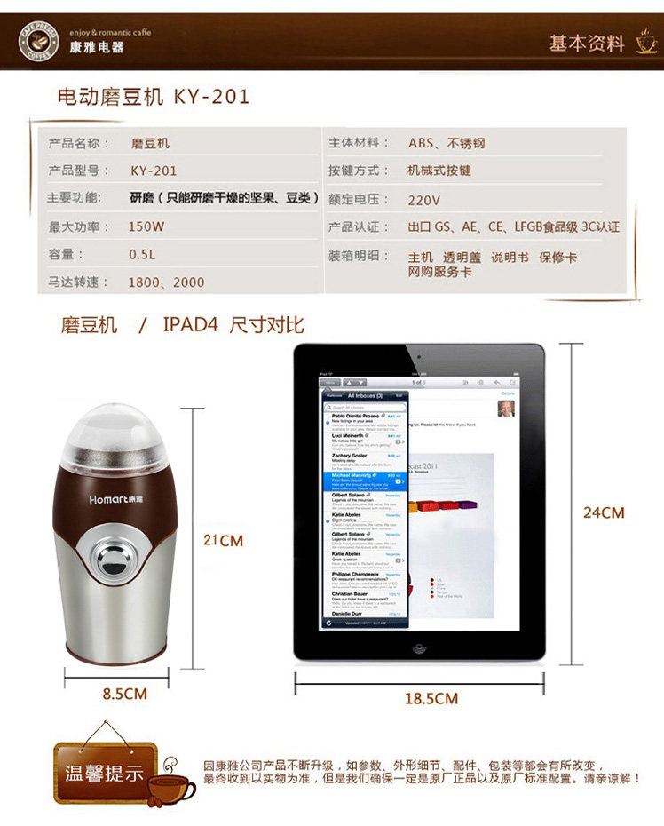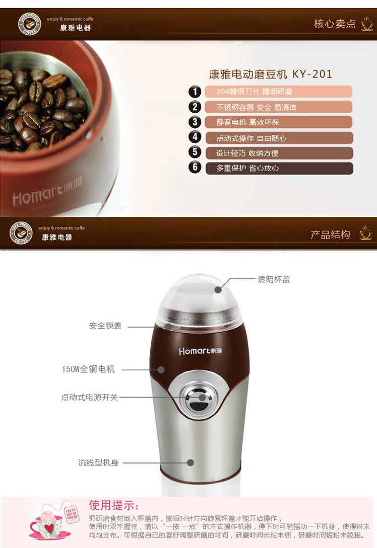 康雅KY-201磨豆机咖啡电动家用超细打粉机小型干磨机磨粉机研磨机