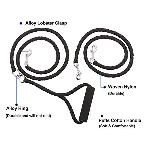 Specifications: Material: Braided nylon zinc alloy padded Leash Length: Approximately 53 inches Color: Black Weight: 8.5 oz Package Size: 10*3.7*1.9 inches
