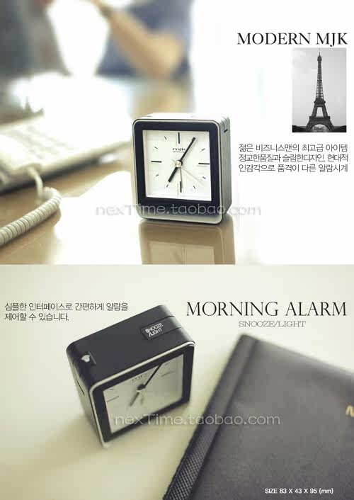 This bell is a bell concept series, no fonts on the panel, it is particularly pure, high-grade glass clock face is (usually plastic clock face), the latest alarm technology with unique LED night light function, when you press night light, alarm clock tick Chende start lights up for about 1 minute more minutes slowly extinguished, beautiful special. Alarm switch on the right corner, for night by taking excellent workmanship, Famous trend.