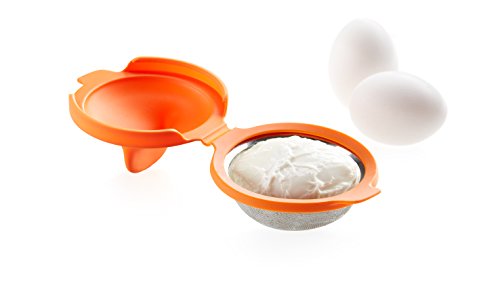 The easiest way to cook poached eggs at home. It has a metal net -that allows drainage of the extra egg white and a silicone cover with holes- to help create the final poached egg result. The Lekue egg poacher holds the shape without breaking, without burning as it floats in the pot creating the perfect poached egg. Directions for use: open the lid, place a glass under the egg poacher maker and break the egg. Place the egg poacher maker inside the simmering water pot.- cook for 3 Min.Feature