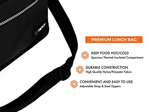 This premium medium capacity insulated lunch bag with shoulder strap easily fits more than 1 person''s lunch, and is ideal for adult men, women, or children for packing lunch to work or school. Its convenient size make it a versatile choice for packing snacks for long road trips in the car!