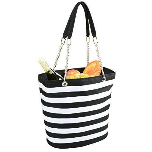 Picnic at Ascot Large Insulated Fashion Cooler Bag - 22 Can Tote - Black Stripe