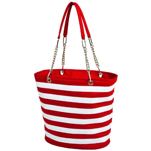 Picnic at Ascot Large Insulated Fashion Cooler Bag - 22 Can Tote - Red Stripe