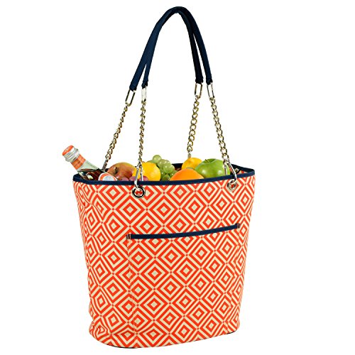 Picnic at Ascot Large Insulated Fashion Cooler Bag - 22 Can Tote - Orange/Navy