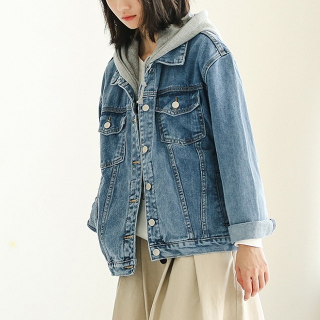 カジュアルに着こなせるパーカーデザインと、デニム素材がGOODバランス。