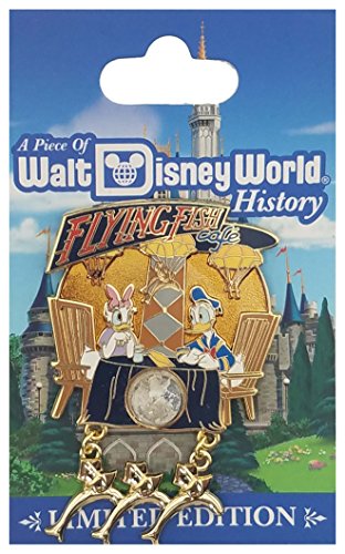 - Donald and Daisy are sitting at a table in the restaurant having dinner. Flying Fish in Red letters above their heads and 3 fish dangles in gold hang below this pin