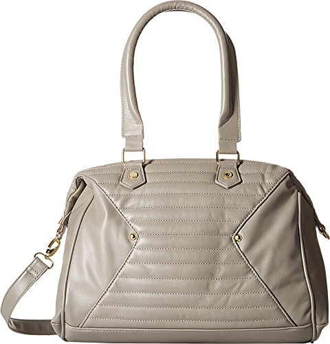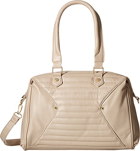 Top zip closure. Dual rolled carry handles. Removable and adjustable crossbody strap. Exterior features polished stud detail, brand plaque at back, polished hardware, and tonal stitching. Flat base. Fully lined interior features back wall zip pocket and two slip pockets. Imported.
