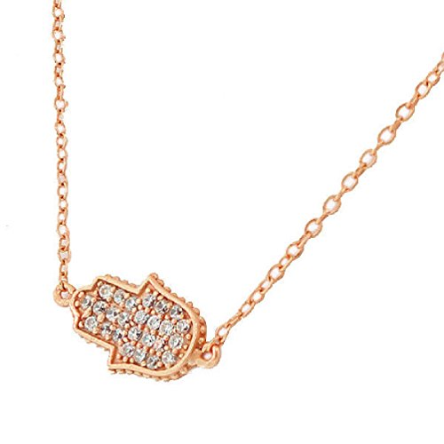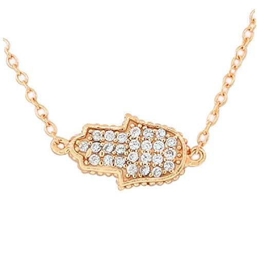 -. Binding : Jewelry -. Brand : Anguss Fashion Jewelry -. Department : girls -. Feature : Length (inches):15 / Rose Gold-Tone Hamsa Evil Eye White CZ Pendant Necklace The pendant showcases a gorgeous delicate Hamsa charm pendant set onto a delicate link chain and sparkling with round white crystal stones. The Hamsa/Evil Eye charm on this pendant is believed to protect the wearer from bad luck. The necklace is crafted of sterling silver. This beautiful jewelry will make a wonderful gift for a lady. -. Label : Anguss -. Manufacturer : Anguss -. Model : 281057567972 -. MPN : 281057567972 -. PartNumber : 281057567972 -. ProductGroup : Jewelry -. ProductTypeName : FASHIONNECKLACEBRACELETANKLET -. Publisher : Anguss -. Studio : Anguss -. Title : Rose Gold Womens Hamsa Evil Eye White Crystals Pendant Necklace