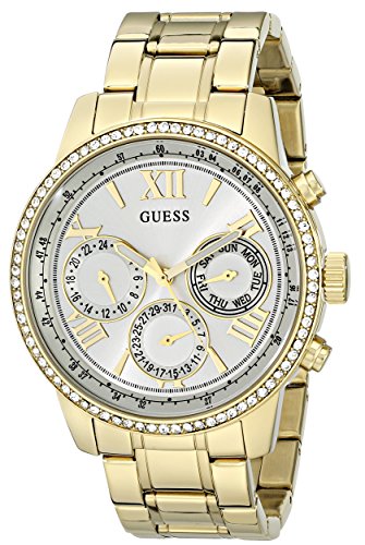 Stainless Steel Gold-Tone Watch with Multi-Function Dial featuring Day, Date and Genuine Crystals that's Perfect for Men too