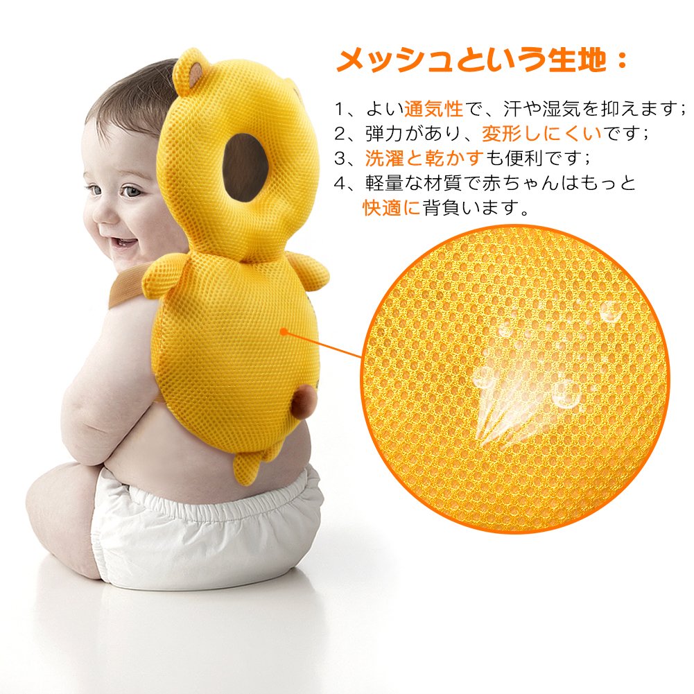【赤ちゃんに負担させない重さ】頭部は40mmの厚さの構造はしっかりと衝撃を吸収してくれます。全体165gと軽量は赤ちゃんに負担がかからないよう配慮されています。