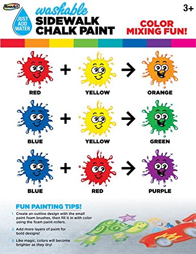-. Feature : Create Big Art Outdoors with RoseArt Sidewalk Chalk Paint / Just add water to the paint powder, mix and paint / 10 fun colors / When you're done playing just wash away the designs / Certified Non-Toxic