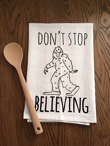 -. Title : Funny Dishcloth/ Tea Towel ~ Don't Stop Believing ~ Sasquatch/ Bigfoot ~ Funny Kitchen Cloth.