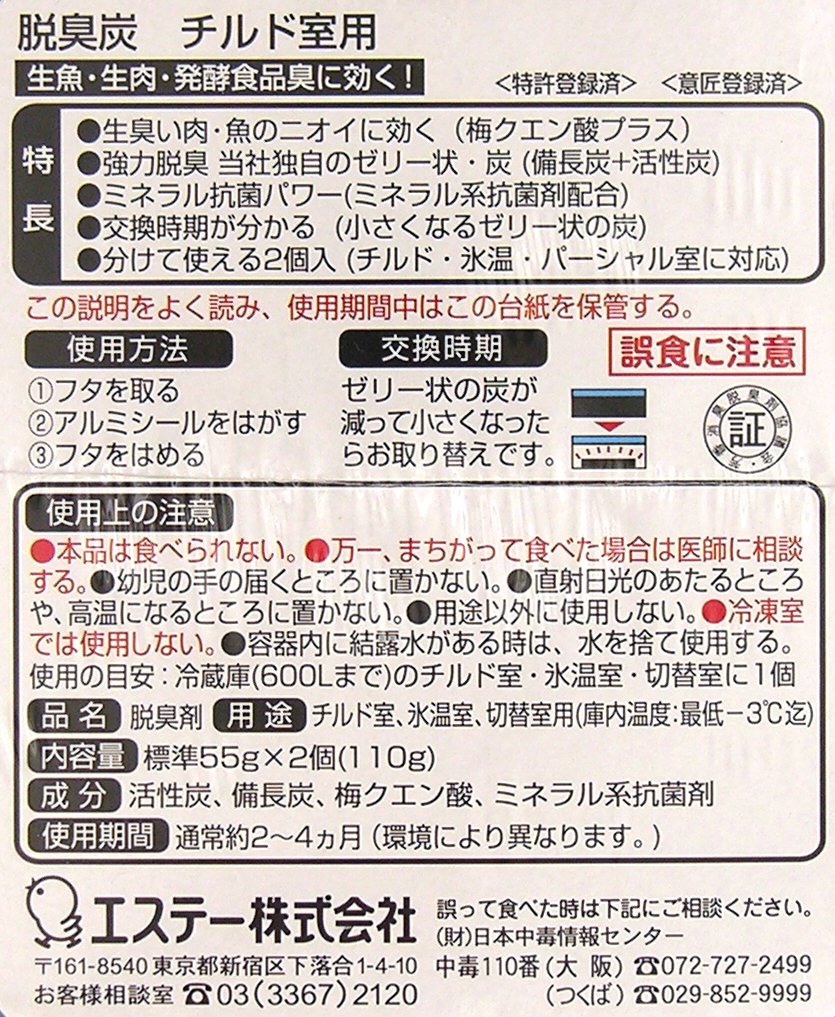 ● Understand the replacement period (small jelly-like charcoal) ● 2 pieces to be used separately (corresponding to chilled, ice · partial room) ● Use period Usually about 2 to 4 months (varies depending on the environment)