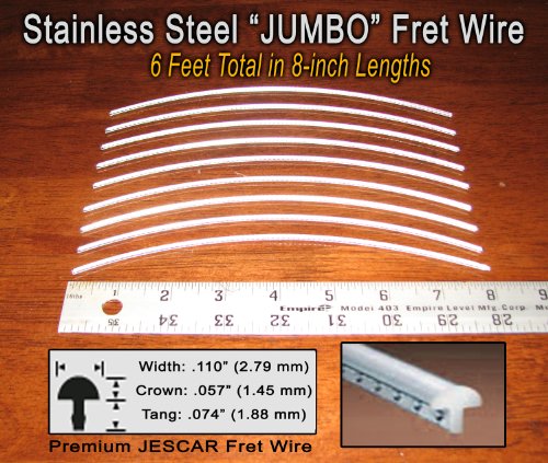 [Product Information]- Six feet of beautiful, durable Jescar Stainless Steel JUMBO fret wire. Most durable wire available!