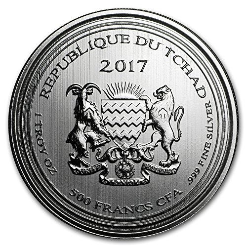 - Reverse: "Republique du Tchad," "2017," "1 troy oz," "500 Francs CFA," ".999 Fine Silver," and Republic of Chad Coat of Arms