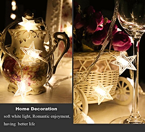 -. Title : Led String Lights for Home Decoration / Party / Christmas / Halloween / Celebrations, Indoor or Outdoor, Star Shape- 16ft 50 Lights - Warm White