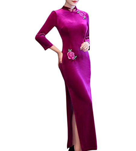 -. Title : Nicellyer 婦人用プリントピュアカラーのビンテージジップアップチョンサム・中国のウェディングドレス