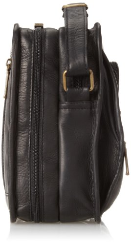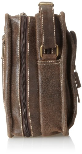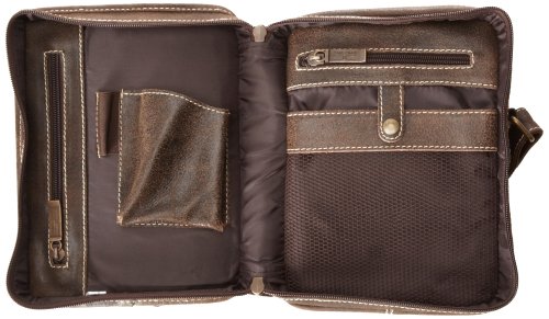 -. Feature : Two zippered compartments onf front / Inside has two zippered pockets and mesh pocket. Includes holders for cellphone and pens/pencils / Fully lined / Extra long adjustable leather strap with buckles