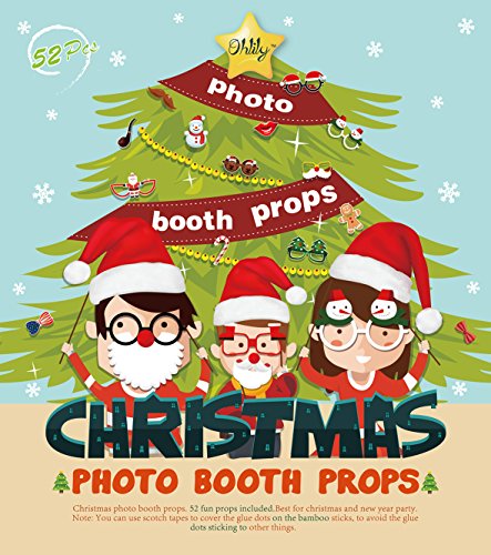 *COME WITH A HUGE VARIETY OF NOVELTY PROPS- 52PCS the most interesting Christmas photo booth props mask party accessories. Includes Christmas ornaments, hat, ice skate, antlers, mustaches, tree, smoking pipes, and much more!