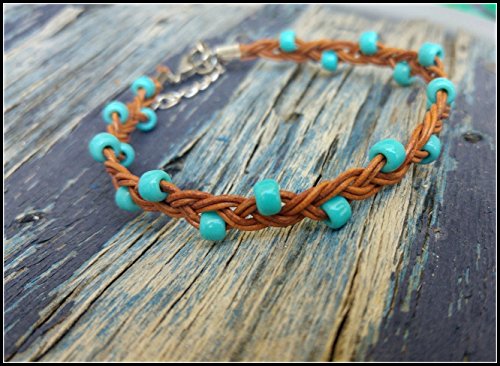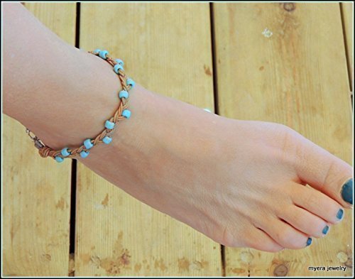 - Title : Cool Handmade Braided Ankle Bracelet with Turquoise beads, Leather Anklet Foot Beach Jewelry for Women
