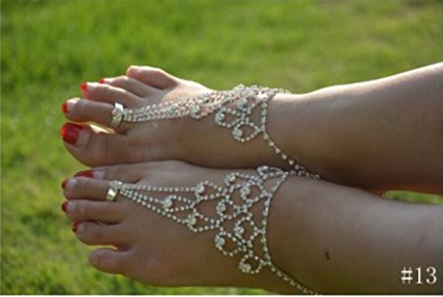 - Feature : Material: Rhinestones / Package includes: 2 pieces of foot chains. / One size fits most. Best gift for your girlfriend, sister. / You can use transparent nail varnish to protect the chain color. / Occasions: On the beach, at home, weddings party, Yoga class, dance class