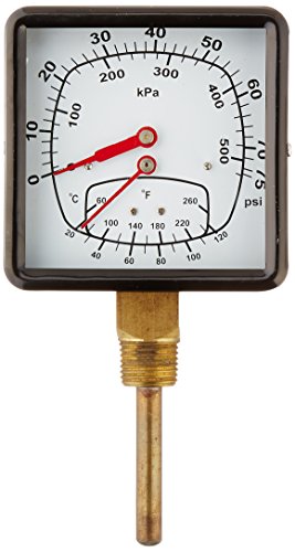 PIC Gauge TRI-SQ-402L-D Bottom Mount Industrial Square Dial Tridicators with Painted Grey Steel Case, Plastic Lens, 4" Dial Size, 1/2" Male NPT Connection Size, 0/75 psi Range, 60/260°F Temperature Range