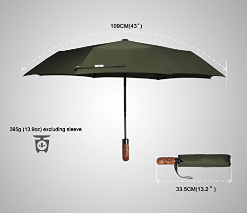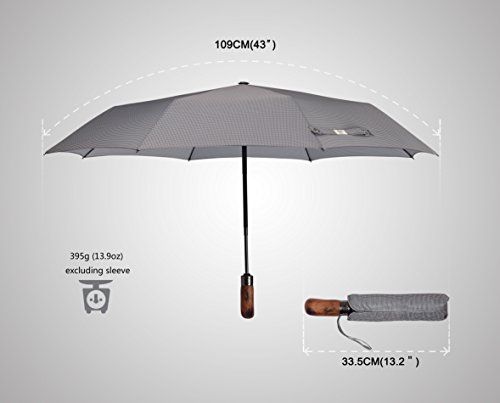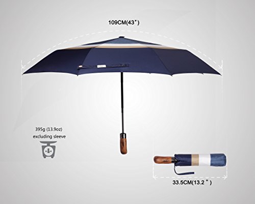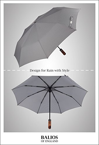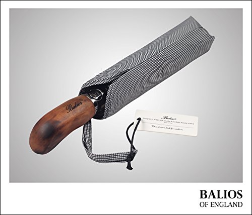 ?Luxury handcrafted real wood handle with finger-notches for ultimate holding comfort. ?Approximate weight: 395g excluding sleeve OR 405g including sleeve. ?Approximate 33.5cm long when closed. ?Approximate 100cm span when open. Package Contents: ?1 x Balios® auto open close umbrella ?1 x 3-Layer matching sleeve with wrist strap Click the ADD TO CART button now and order your top quality Balios® umbrella! Balios. Making Proper Umbrellas. 0