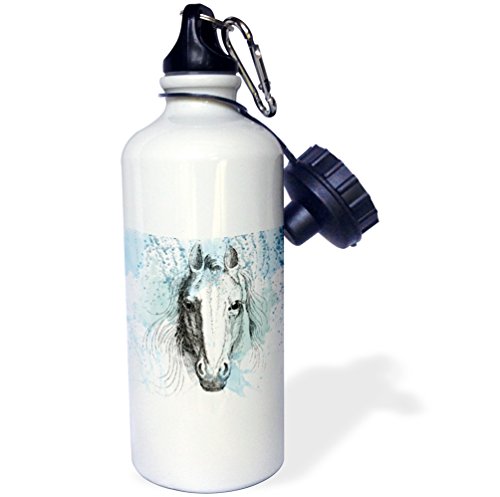 3dRose wb_179100_2 "Blue Watercolor Horse Flip Straw" Water Bottle, 21 oz, White