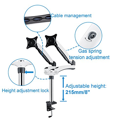 8”/215mm stand axle with lock nut allows arms height adjustment. Cable management makes cable neat and desk organized.