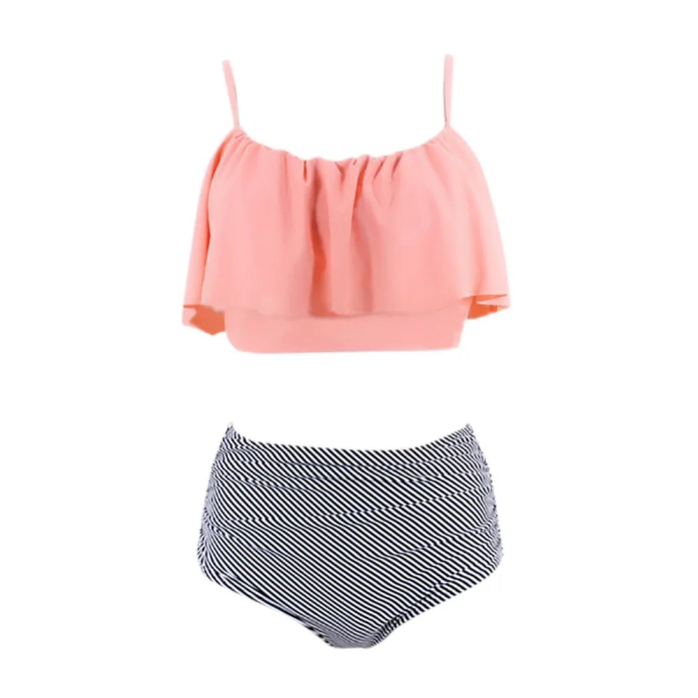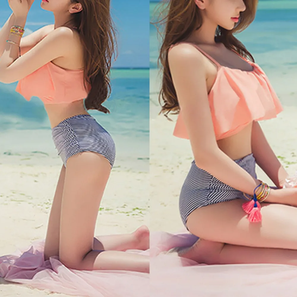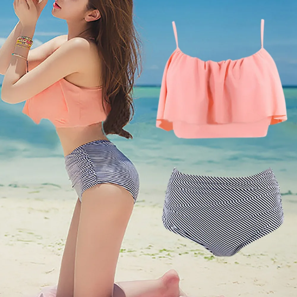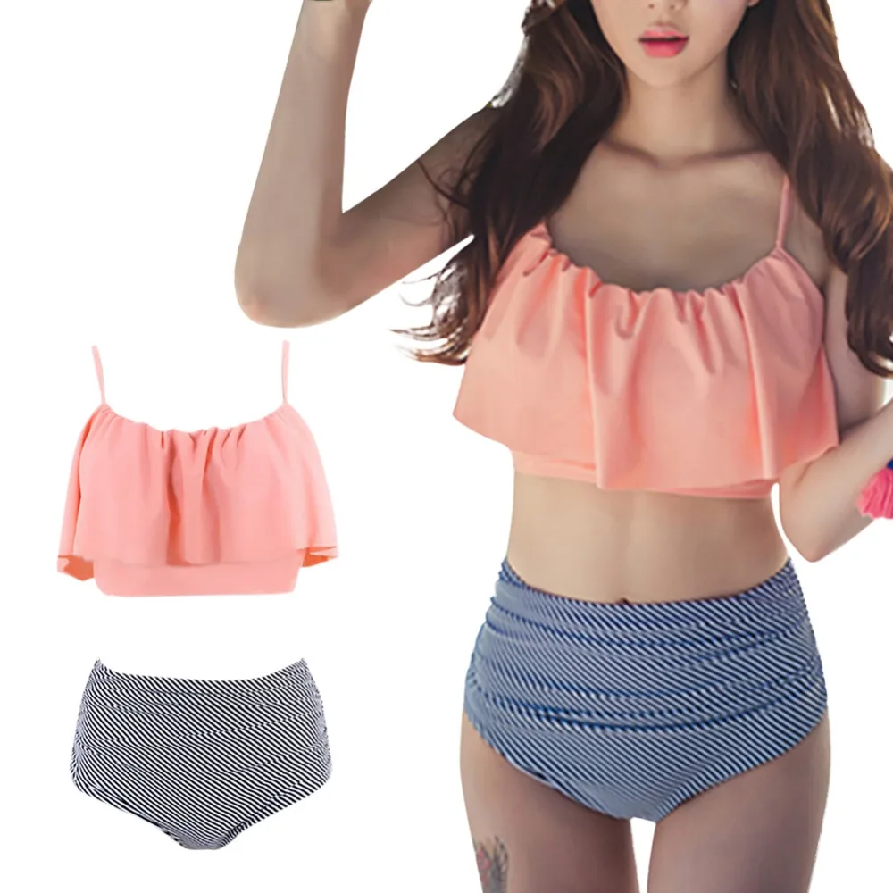 Summer push up new bikini sexy Lotus leaf edge swimsuit bathing suit women high waist swiming suits Halter Top swimwear