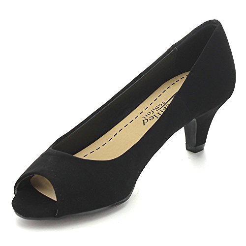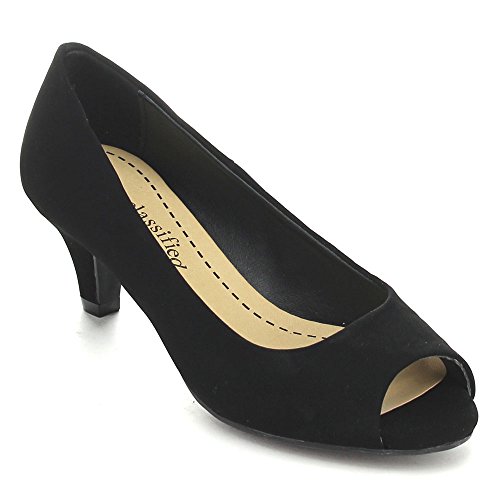 (City Classified)/Women's/Pumps/DIRECT FROM USA/City Classified Peter Women's Peep Toe Low Heel Slip On Dress Pumps, Color:BLACK, Size:6.5