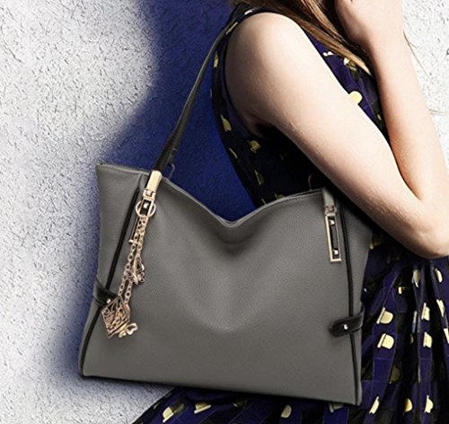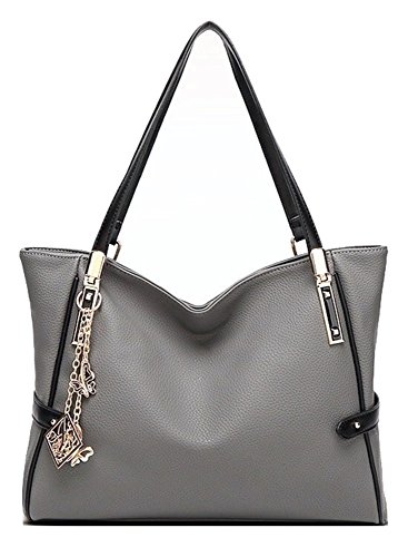Gorgeous Grey Pebble-Grain Leather with Black Trim and Stylish Gold Charm Handbag