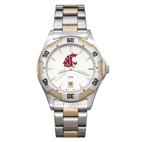 Studio : LogoArt Publisher : LogoArt Binding : Sports Product Description The men's All-Pro two-tone watch features a brushed finish chrome ion plated brass case with a rotating two-tone bezel and two-tone brushed stainless steel link bracelet with push button buckle. It sports the team emblem printed in color on a white dial which has raised gold-tone luminous hour markers, luminous hour, luminous minute and second hand and date window at the 6 hour position. The 3ATM/99 feet water resistant case has a mineral glass crystal and a screw-down stainless steel back. The watch features a precision Japanese quartz movement with a two year battery and lifetime limited warranty and it is packed in a tin gift box. 0