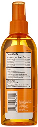 L'Oreal Paris Advanced Suncare Sunscreen Oil Spray SPF 50+ contains a nourishing blend of vitamin E, argan oil, shea butter oil, grapeseed oil & sunflower oil. The easily-absorbed formulas utilize L'Oreal's patent-pending polymer technology which acts as an invisible shield for the skin for improved water resistance, protection & effectiveness. Non-greasy feel, quickly absorbed into skin for a dry finish. Ultra water and sweat resistant. Broad spectrum UVA/UVB SPF 50+.Feature