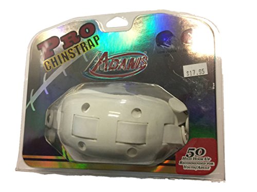 -. Binding : Sports -. Brand : Adams USA -. Feature : For durability, the Pro Chin Strap is constructed with polycarbonate, a high impact-resistant plastic for maximum performance / The cup is lined with color coated vinyl for player comfort / Adjustable nylon straps for comfort and fit / All Pro chin straps come with the HH-11 Adams exclusive patented high impact plastic buckles; Patent #6,481,066 -. IsAutographed : 0 -. IsMemorabilia : 0 -. Label : Adams USA -. Manufacturer : Adams USA -. Model : PRO-50 4D-BK/BK-p -. MPN : PRO-50 HI NA -. PackageQuantity : 1 -. PartNumber : PRO-50 HI NA -. ProductGroup : Sports -. ProductTypeName : SPORTING_GOODS -. Publisher : Adams USA -. Studio : Adams USA -. Title : Adams USA PRO-50-4D 4-Point High Football Chin Strap with D-Rings