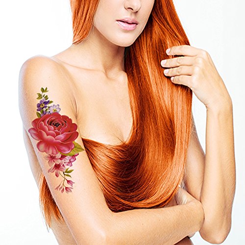 TAFLY Red Peony Flower Body Art Temporary Tattoo Transfer Sticker 5 Sheets