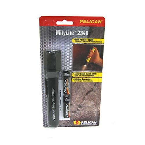 Studio : Pelican Publisher : Pelican Product Description The MityLite 2340 is a compact, convenient personal flashlight, but is also a powerful professional duty light. A pre-focused Xenon lamp module produces a powerful, bright white, modified spot beam. The body is made of unbreakable Xenoy that resists chemicals and water. The MityLite 2340 has a tail button for easy on/off or intermittent light. It is powered by 2 AA alkaline cells and safety approved for hazardous conditions. A must-have for every toolbox. 0