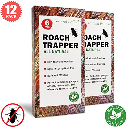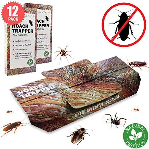 Cockroach Trap Sticky Glue - 12 pack Roach Traps Pet Safe for Indoor Use by Natural ProTech ...